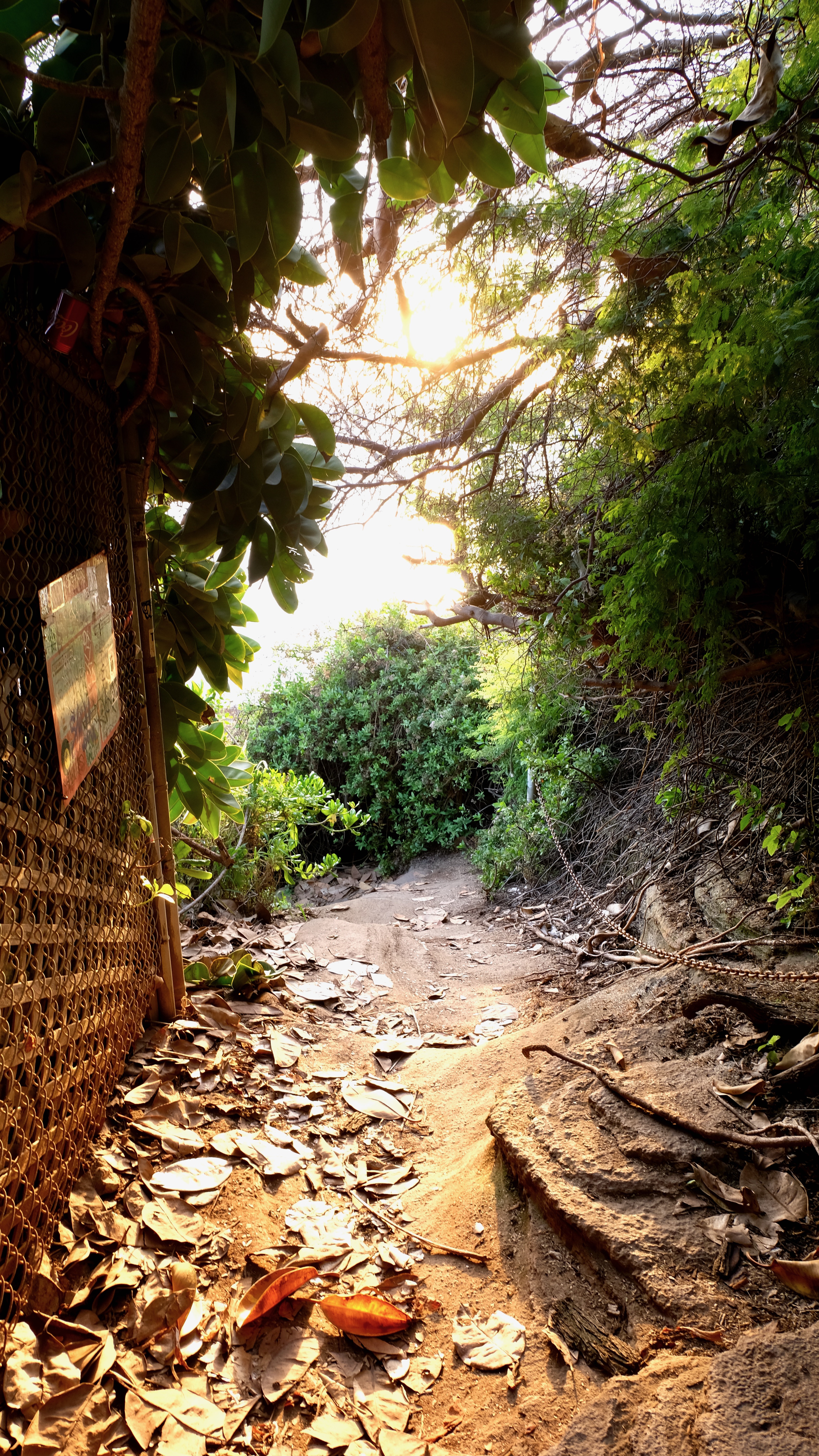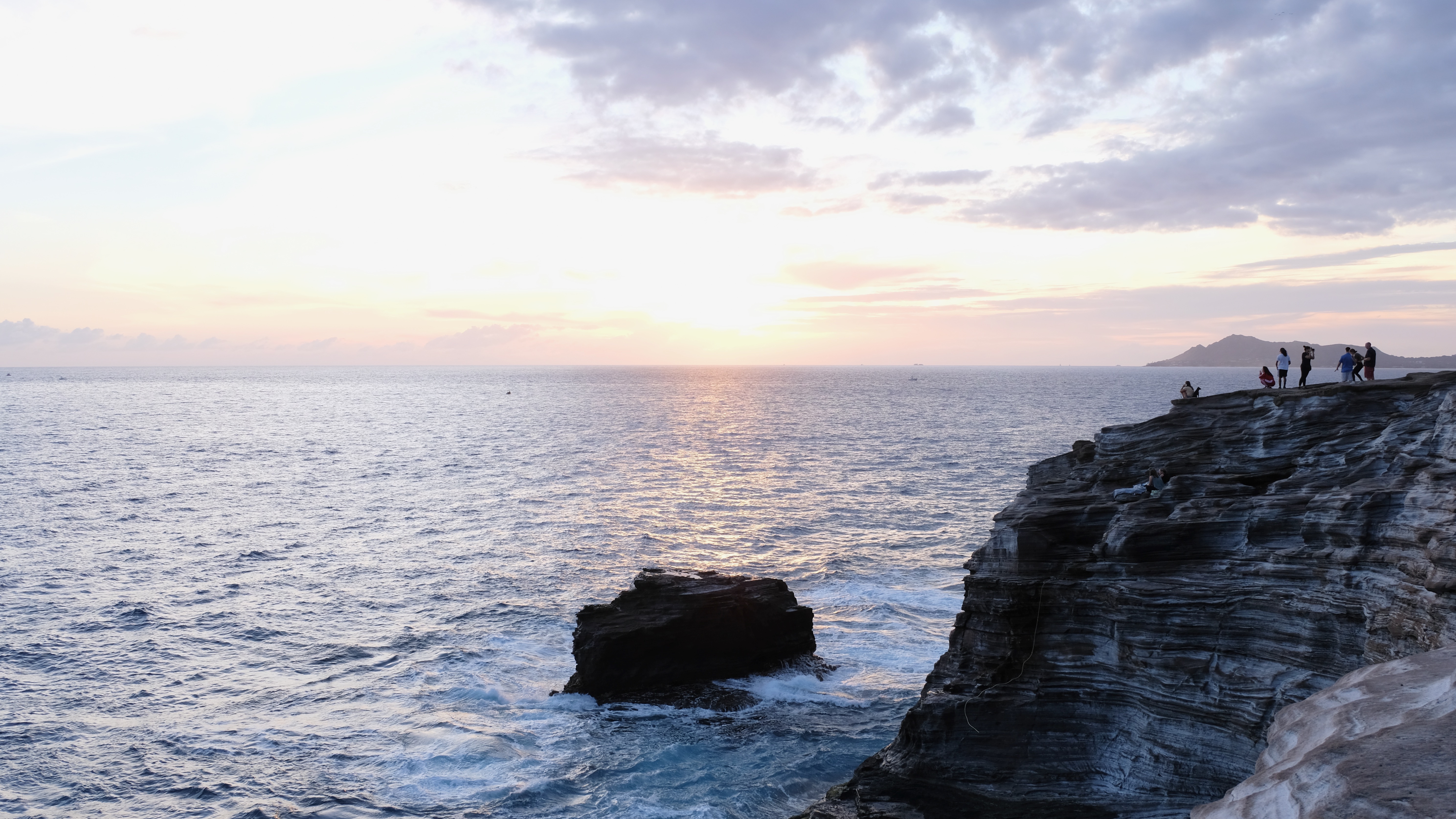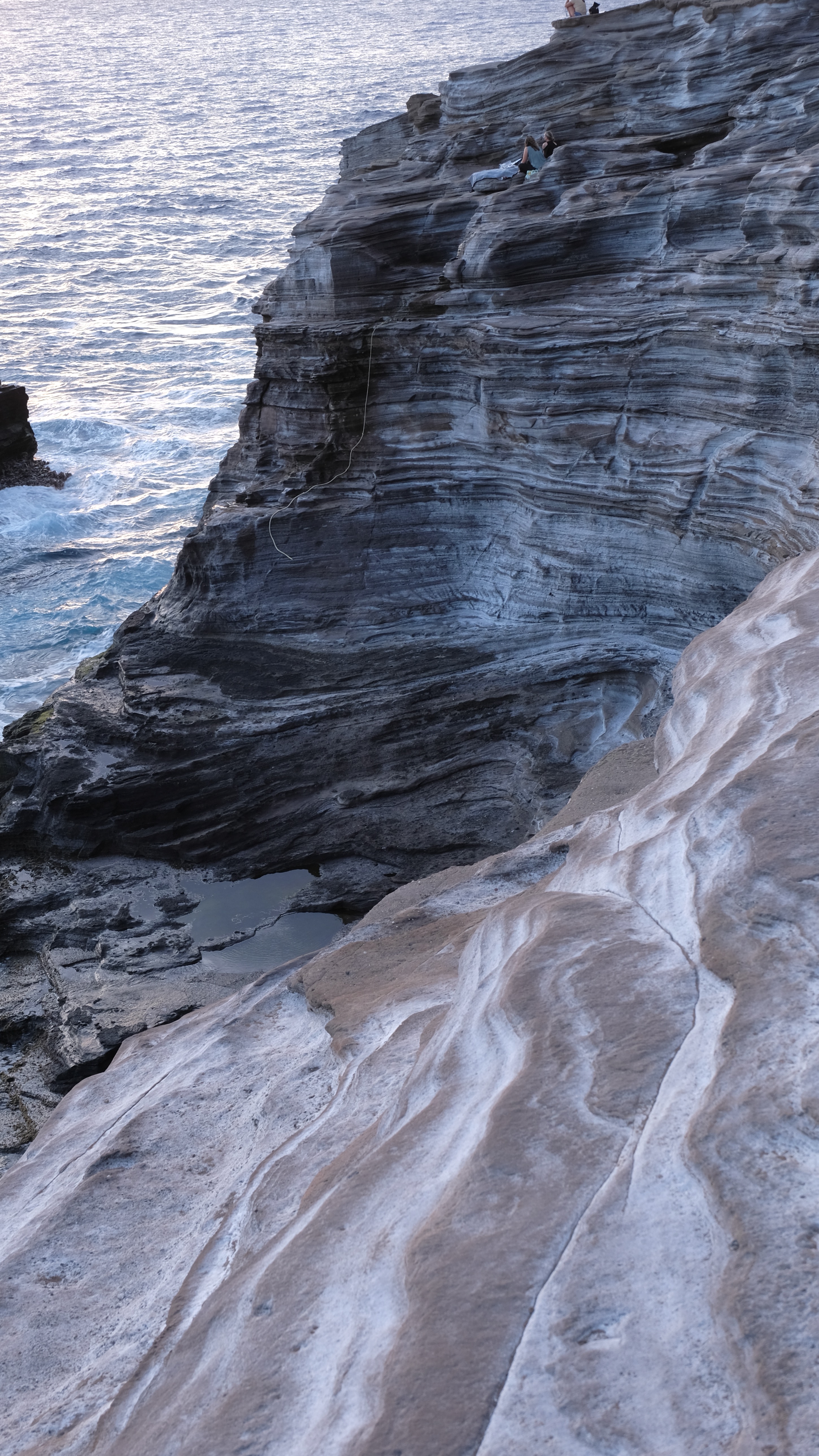 As I wanted some p&q I sat away from the main crowd on naturally worn away stone that was like a seat. Filled with warmth from the day and for stone comfy to sit on. It was an in memory of seat. I can see why they came to watch the ocean and light. Or perhaps he was a cliff diver who lost his life living it full cliff diving. There was also a rescue ring with Lei so I’m hoping this place has some good juju! Flowers are normally placed where people died or they are in Europe along roads. Or maybe it was an ocean offering.