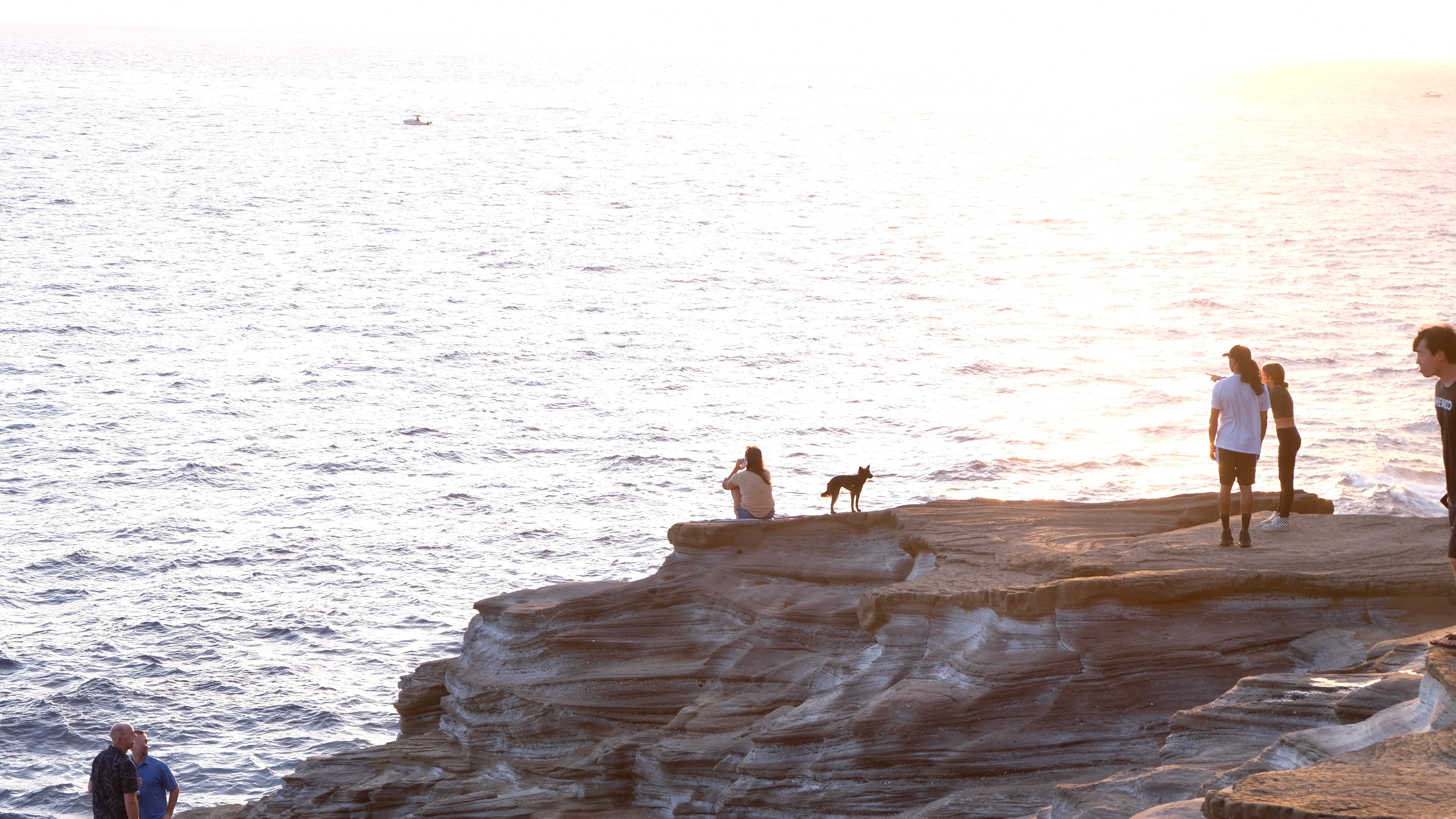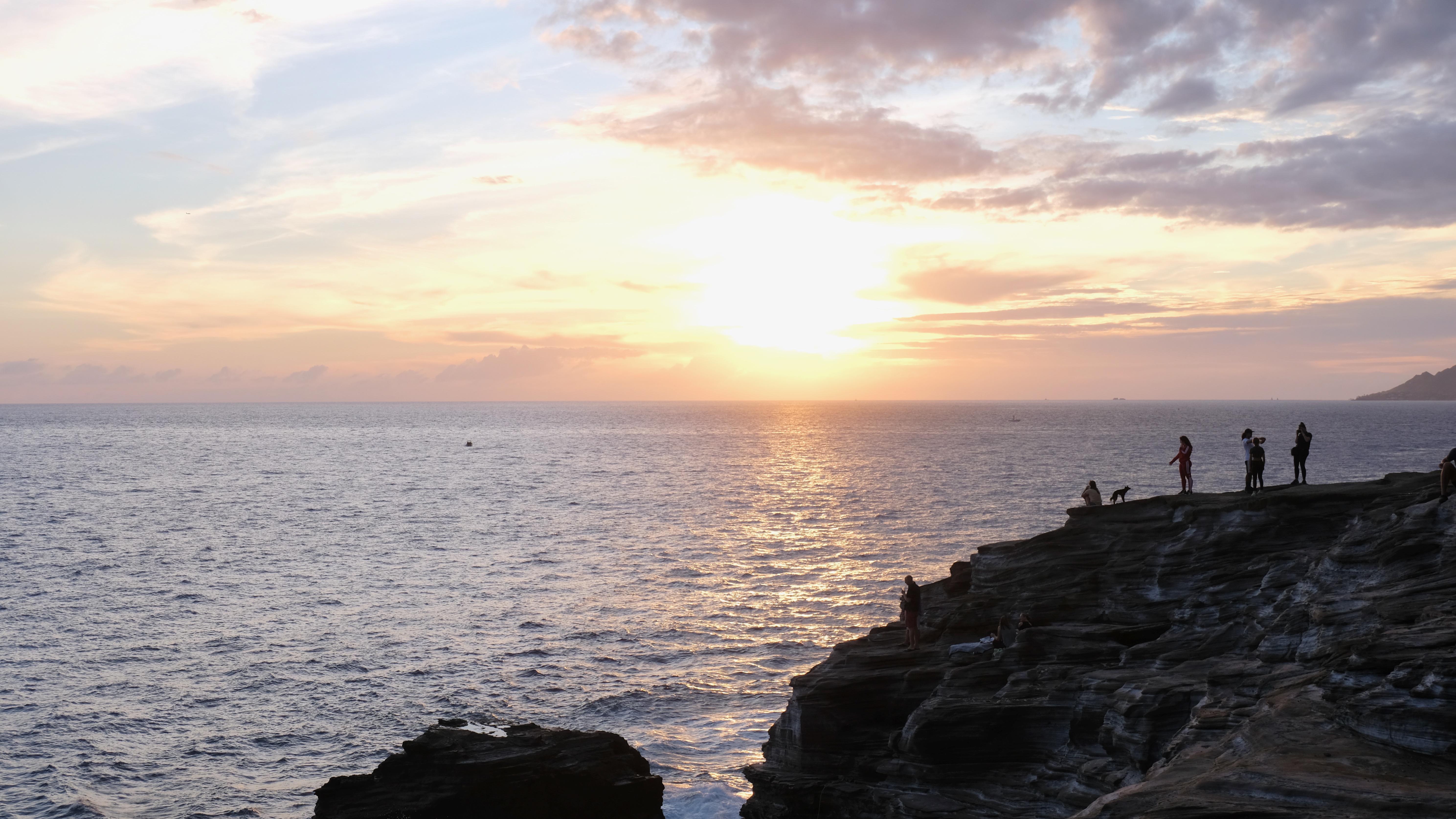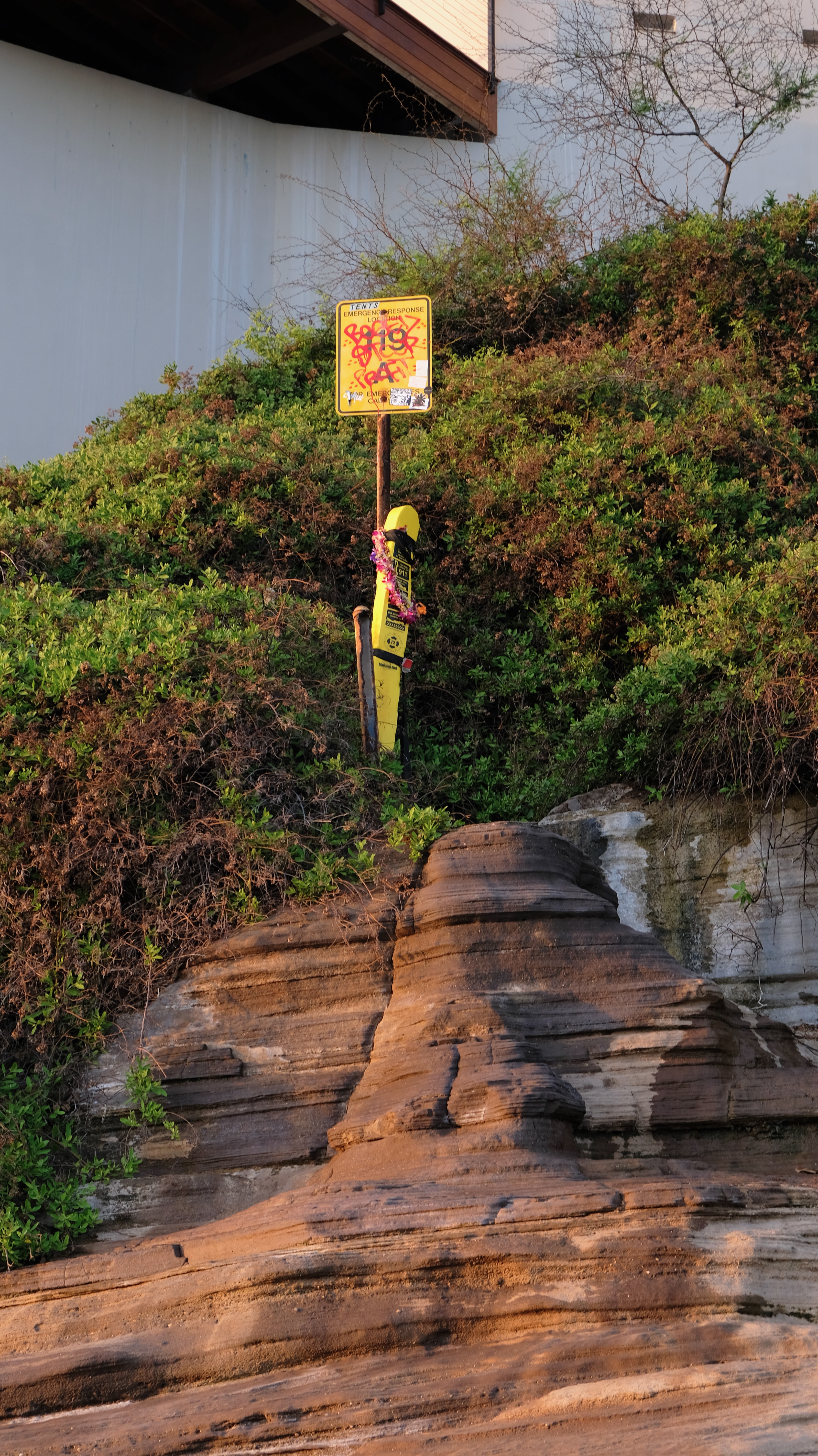 As I wanted some p&q I sat away from the main crowd on naturally worn away stone that was like a seat. Filled with warmth from the day and for stone comfy to sit on. It was an in memory of seat. I can see why they came to watch the ocean and light. Or perhaps he was a cliff diver who lost his life living it full cliff diving. There was also a rescue ring with Lei so I’m hoping this place has some good juju! Flowers are normally placed where people died or they are in Europe along roads. Or maybe it was an ocean offering.