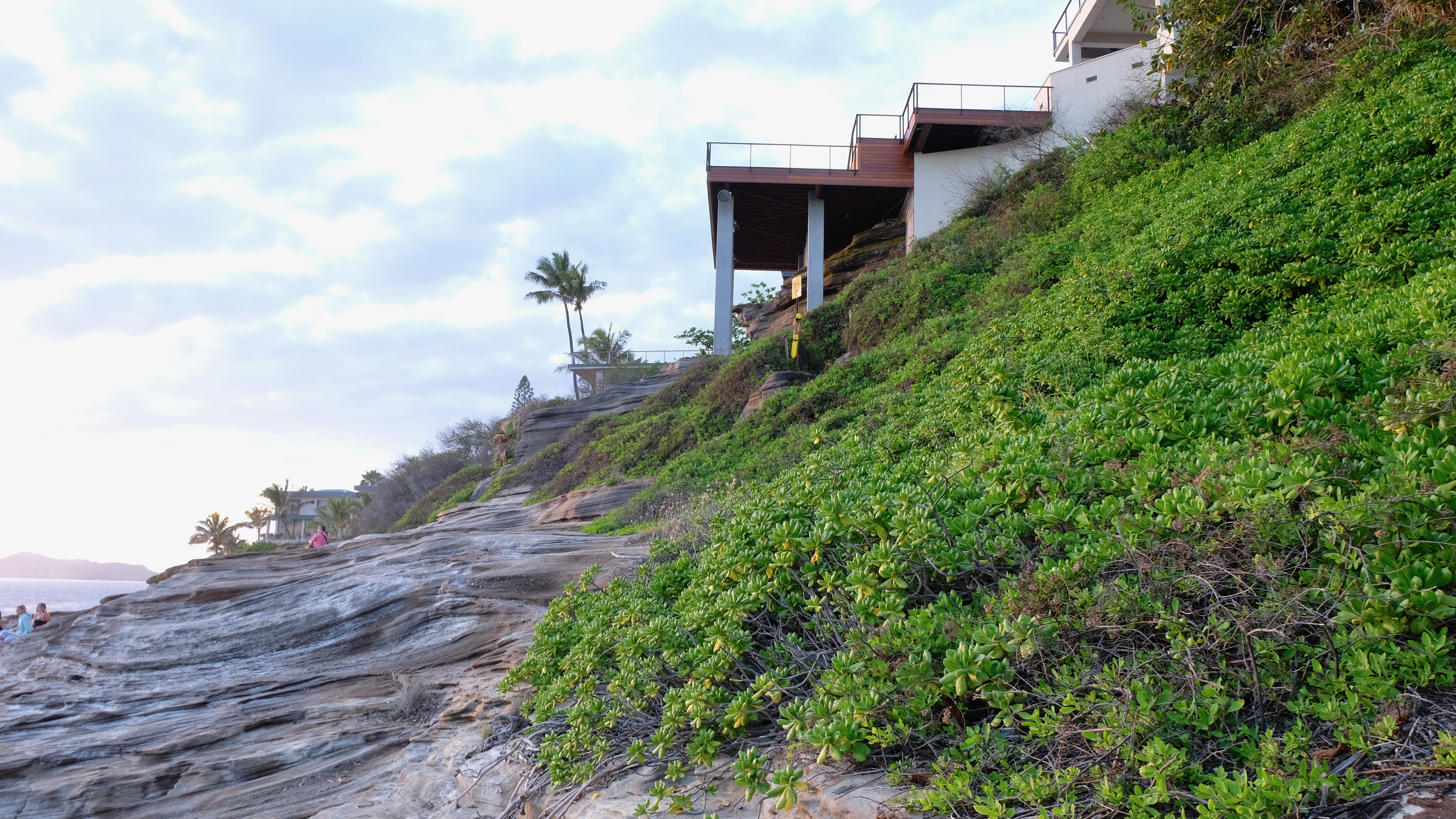 After a quick stop at Lania Lookout we headed to a sunset spot Spitting Caves, also known as China Walls. Caves in the cliff spit out the water as the waves crash into them. It’s literally a run down path between two houses that looks like it’s probably a pee alley. You go down a steepish dirt path that opens out onto amazing ocean views and rocks. It was already getting busy with sunset watchers and whale watchers when we got there. P later commented that in the USA people actually stop to watch the sunset. This was more so along the Big Sur, but then you have to stop and watch the sunset along the Big Sur. If I can I like to watch the sunrise to sunsets.