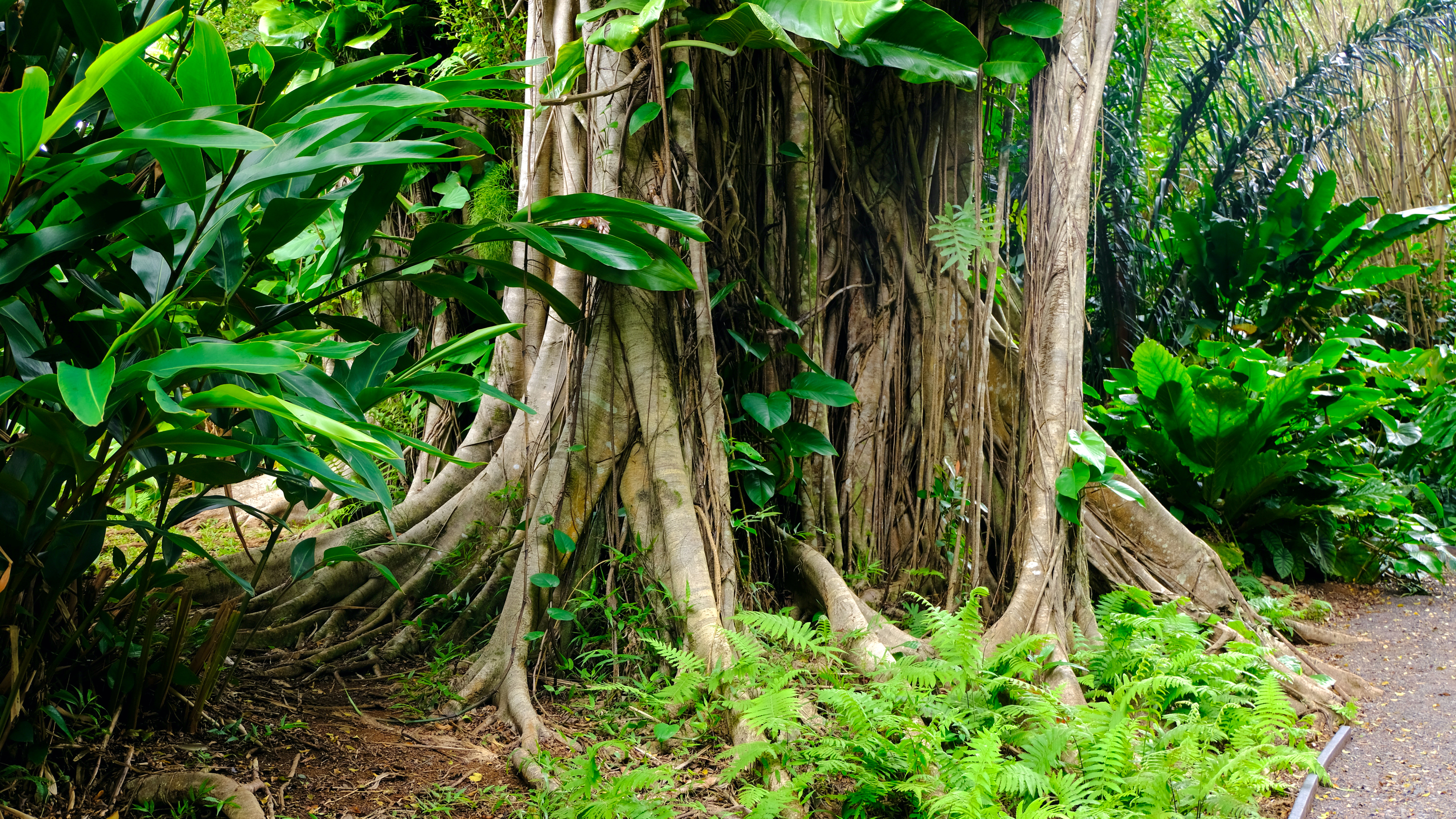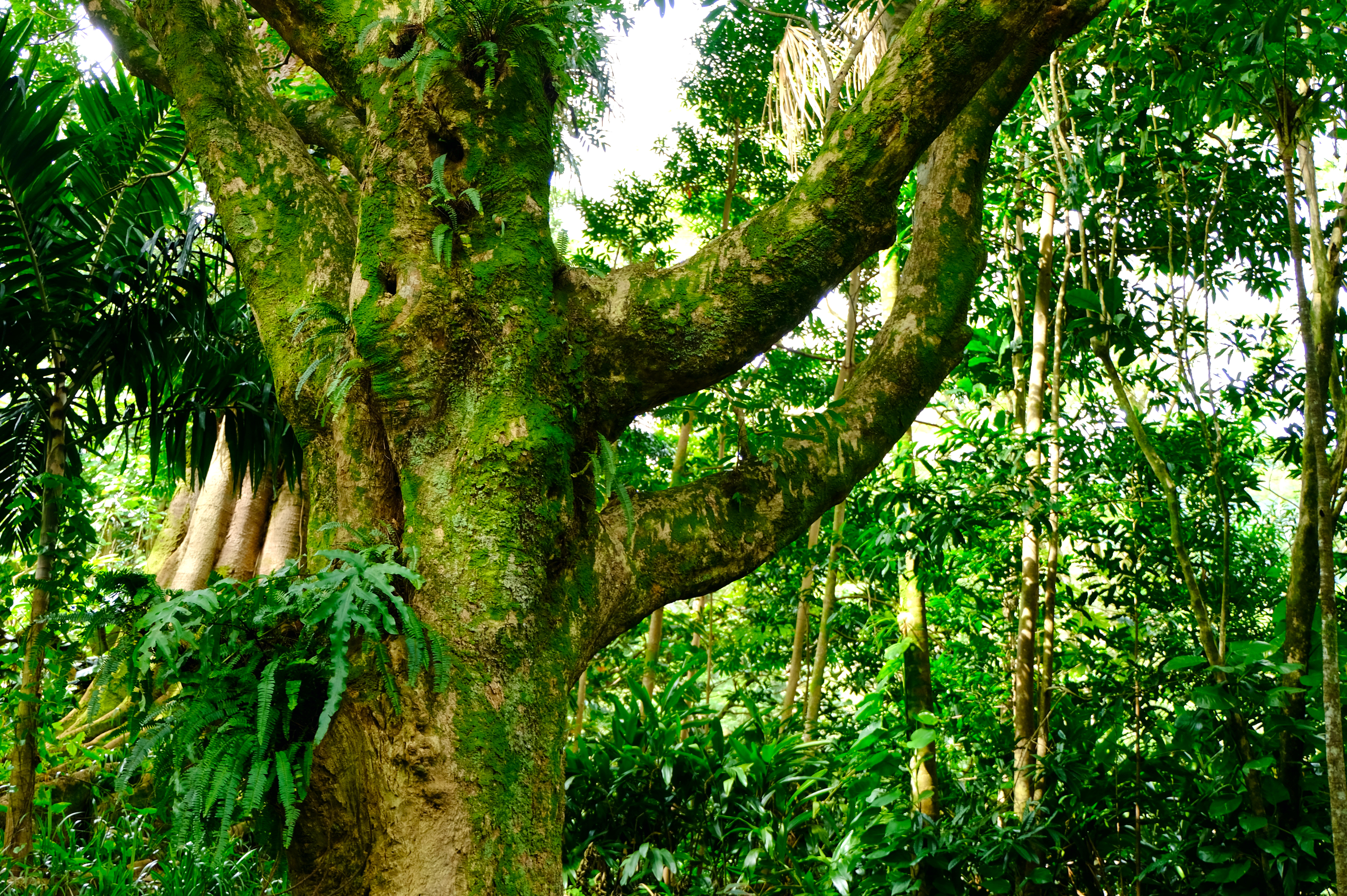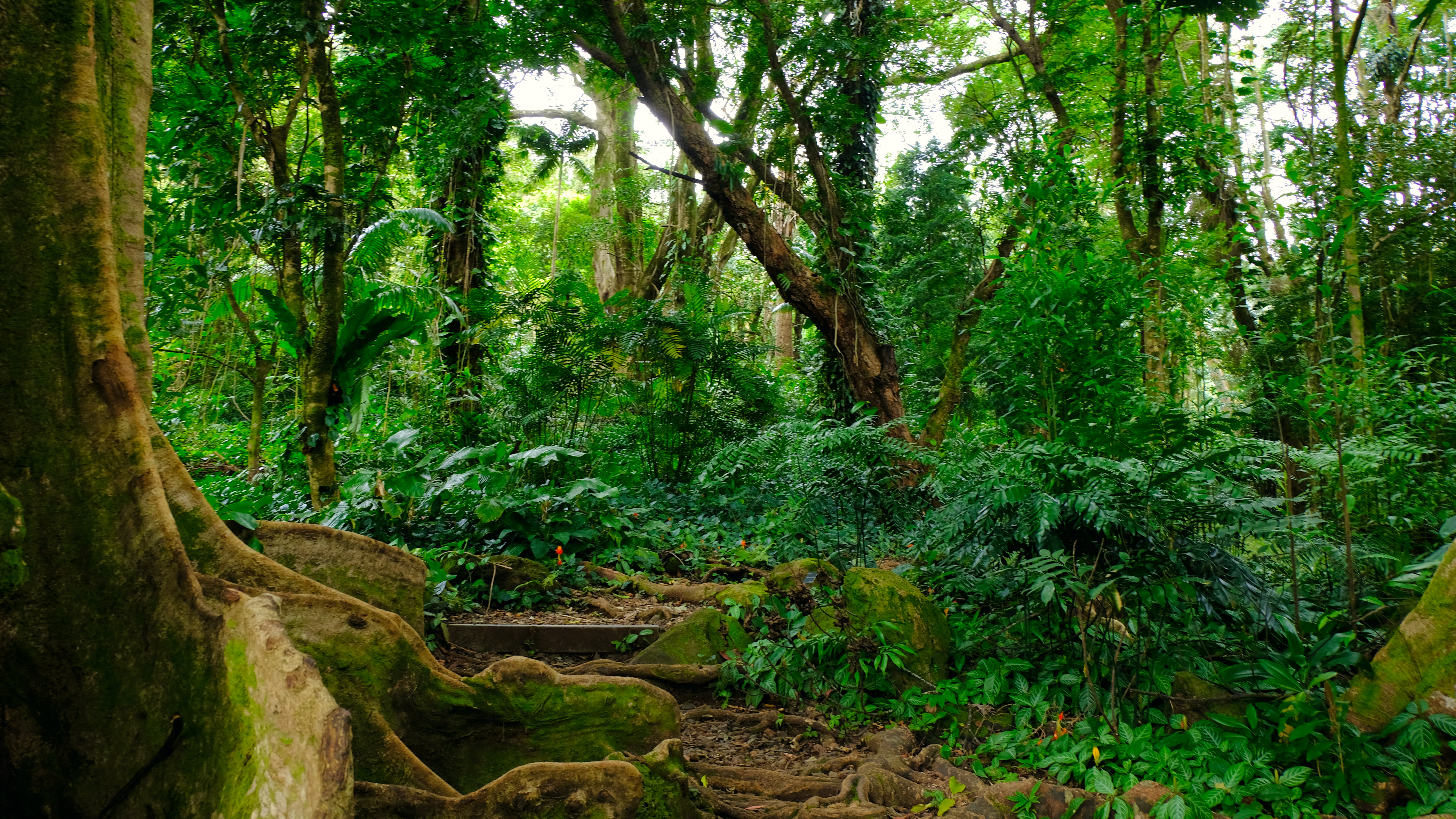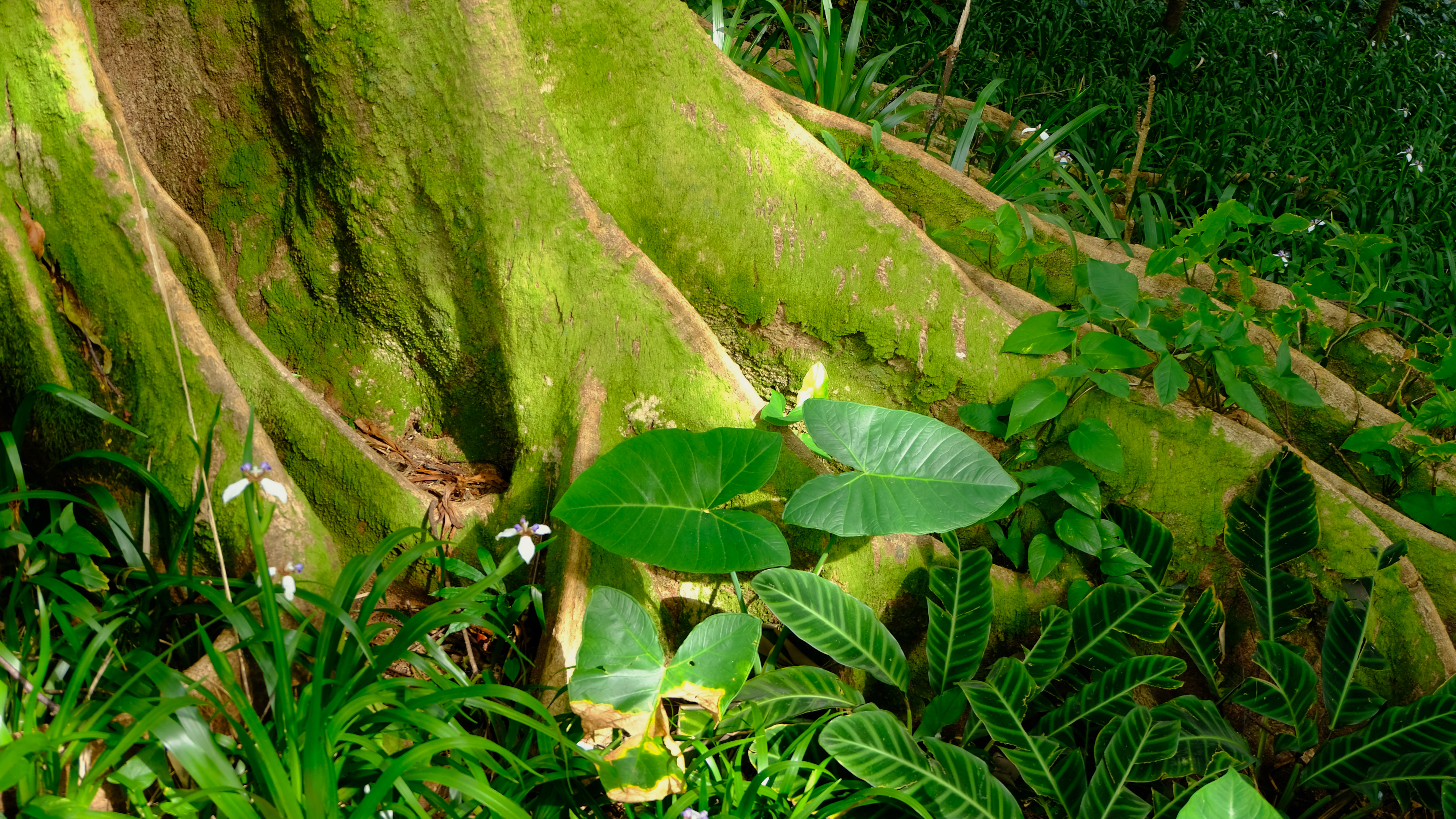 Deviating from the path at the end of Manoa Falls trail back the carpark, enticed by pink flowers and thick tree truck bases you could camp in we stumbled across Lyon Arboretum.