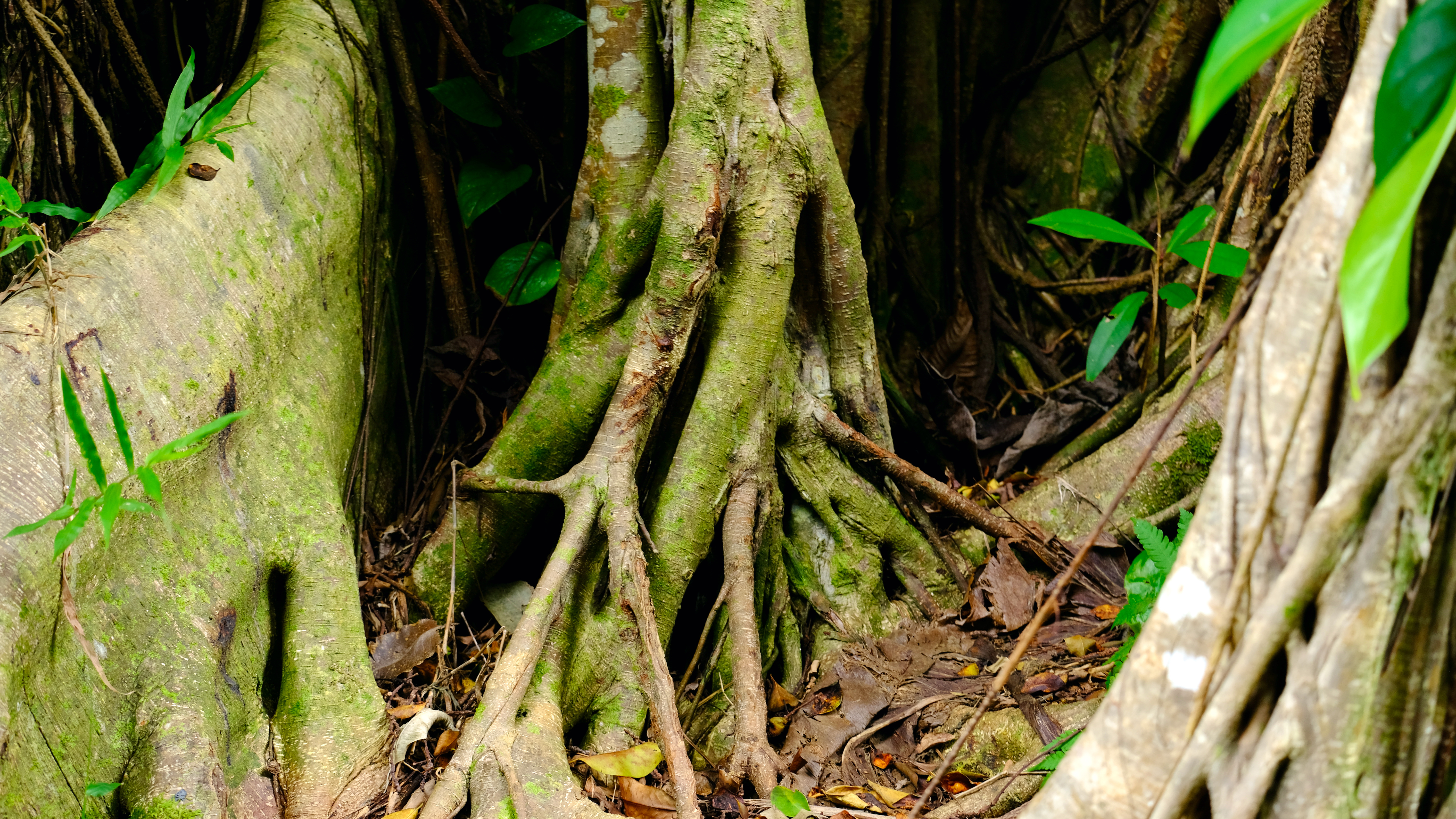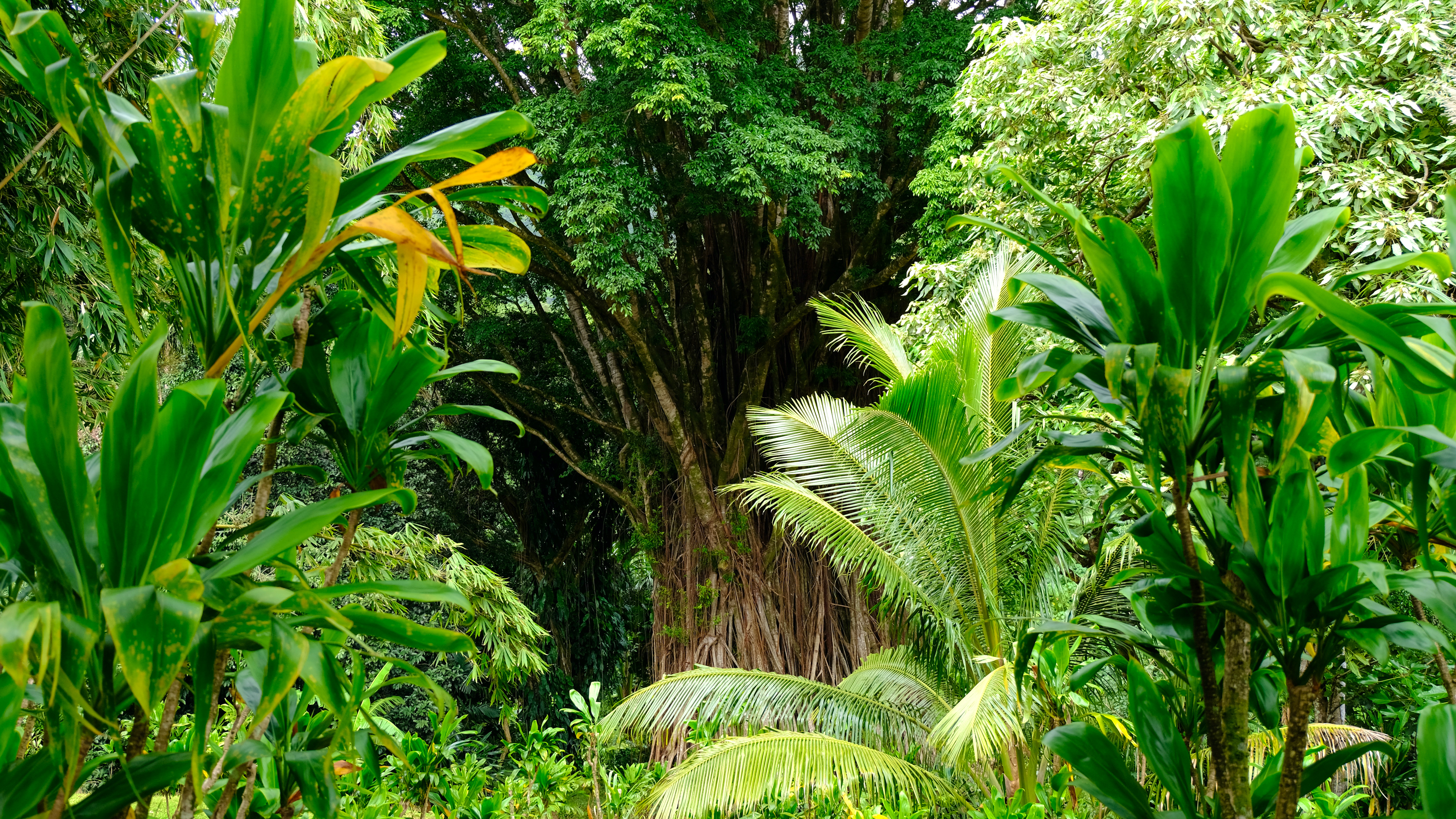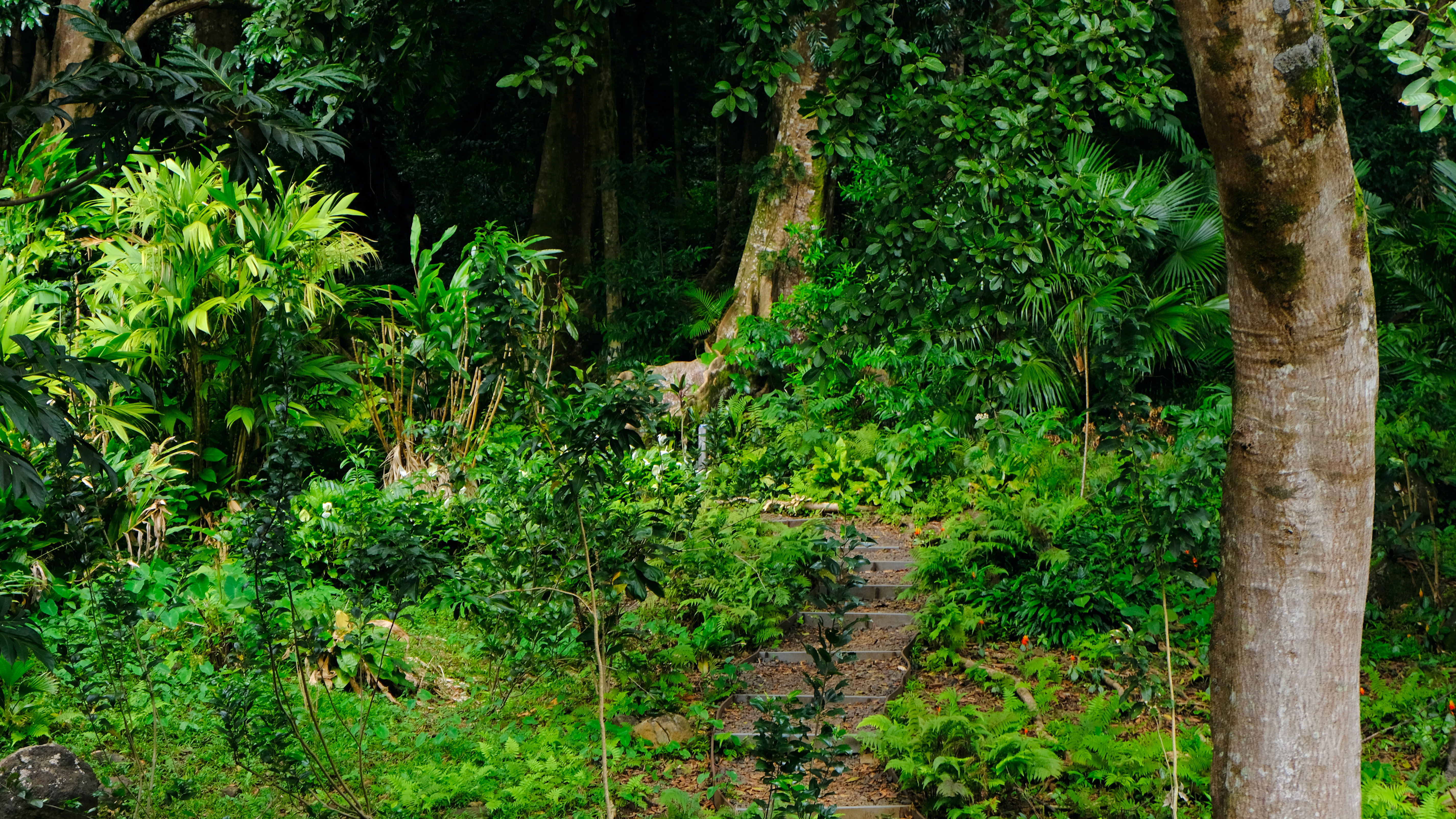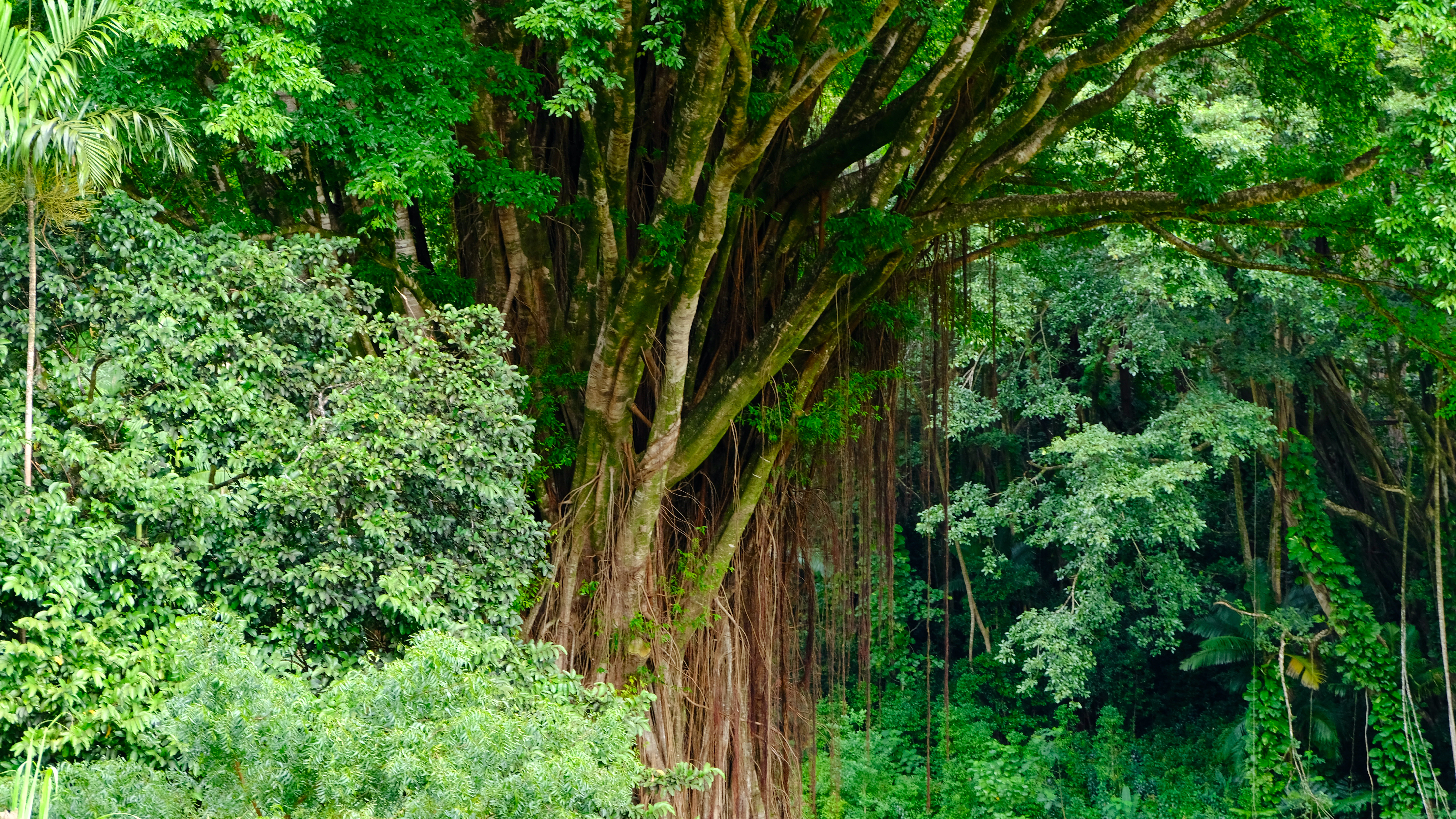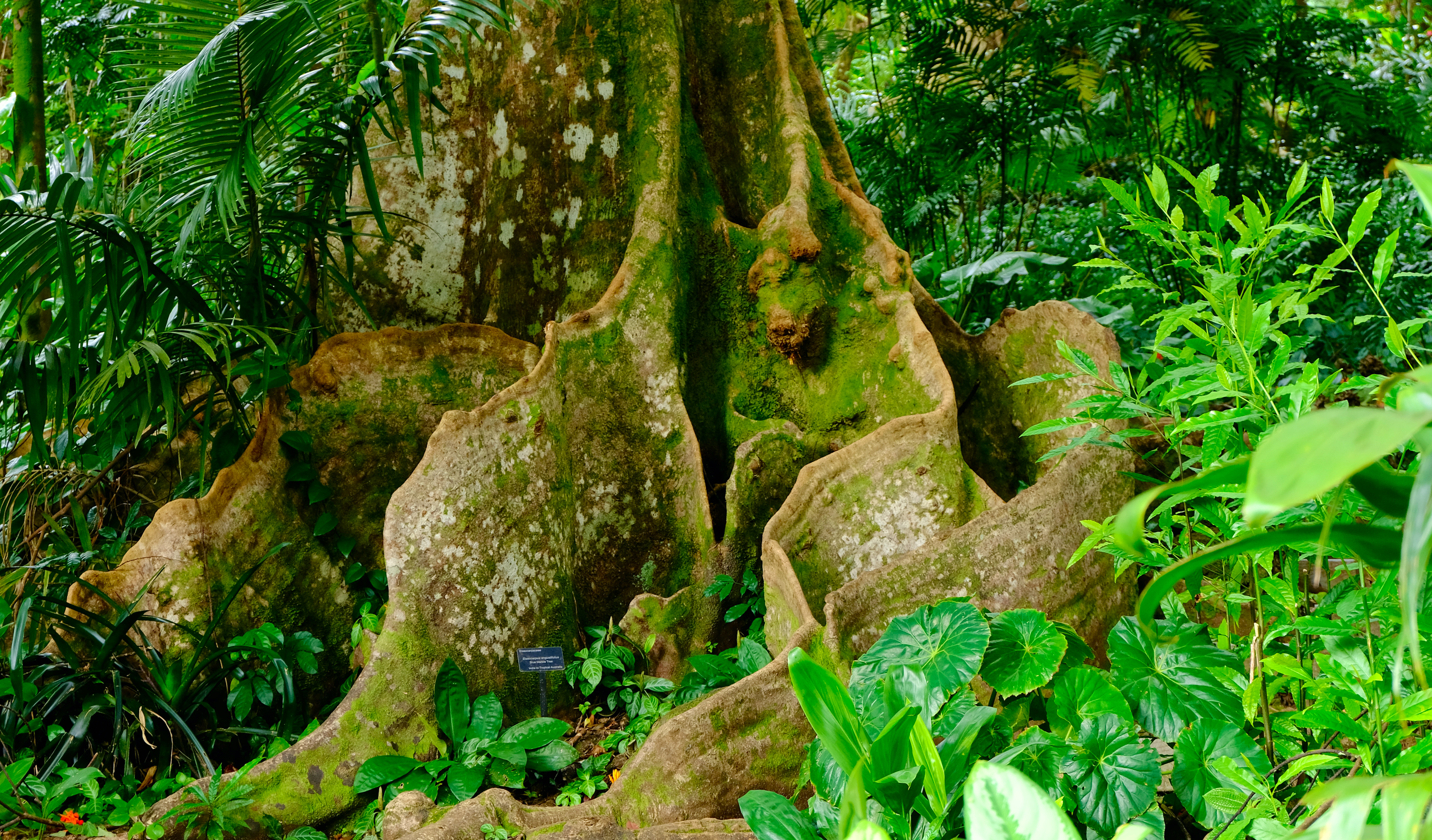 Deviating from the path at the end of Manoa Falls trail back the carpark, enticed by pink flowers and thick tree truck bases you could camp in we stumbled across Lyon Arboretum.