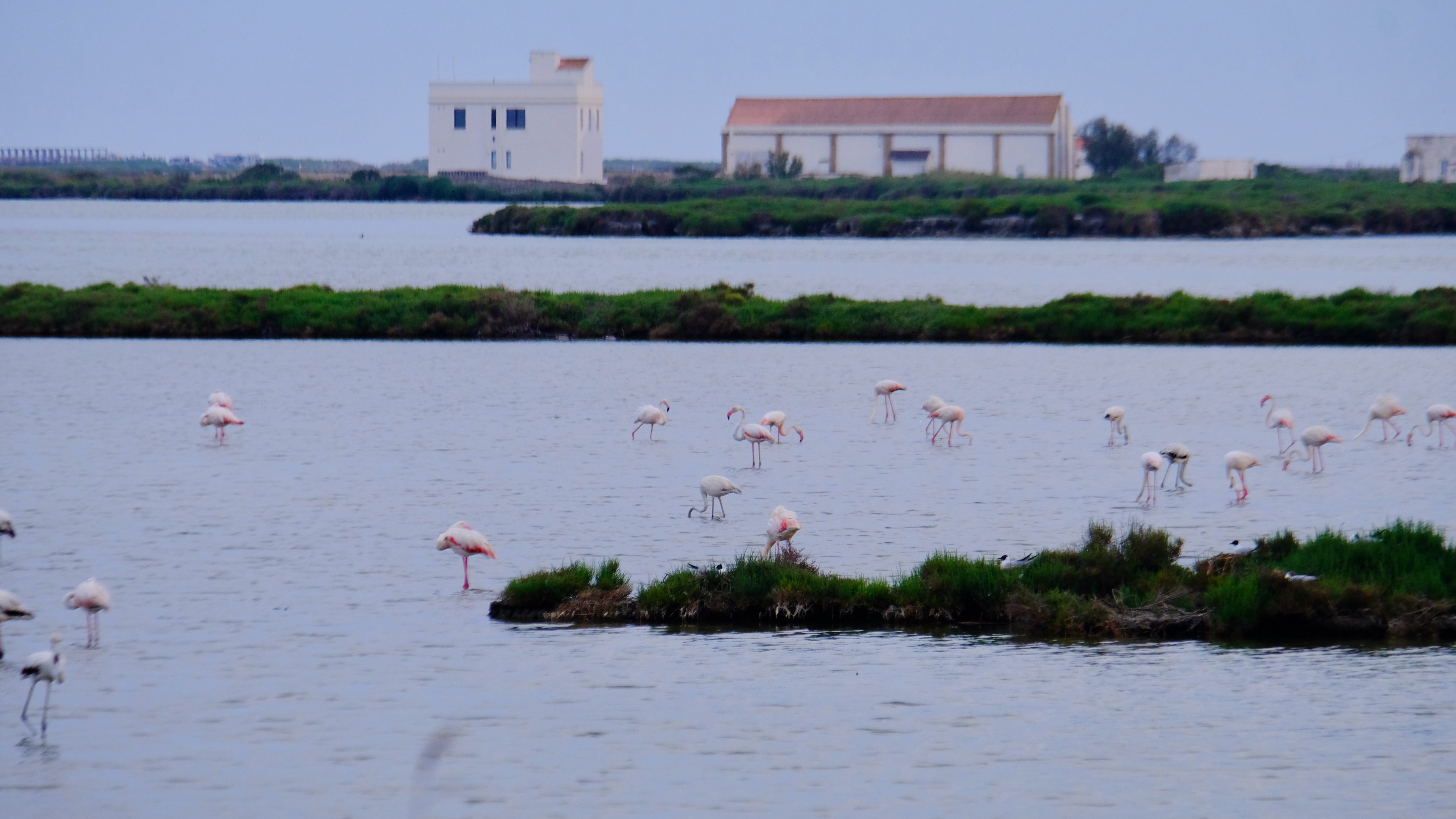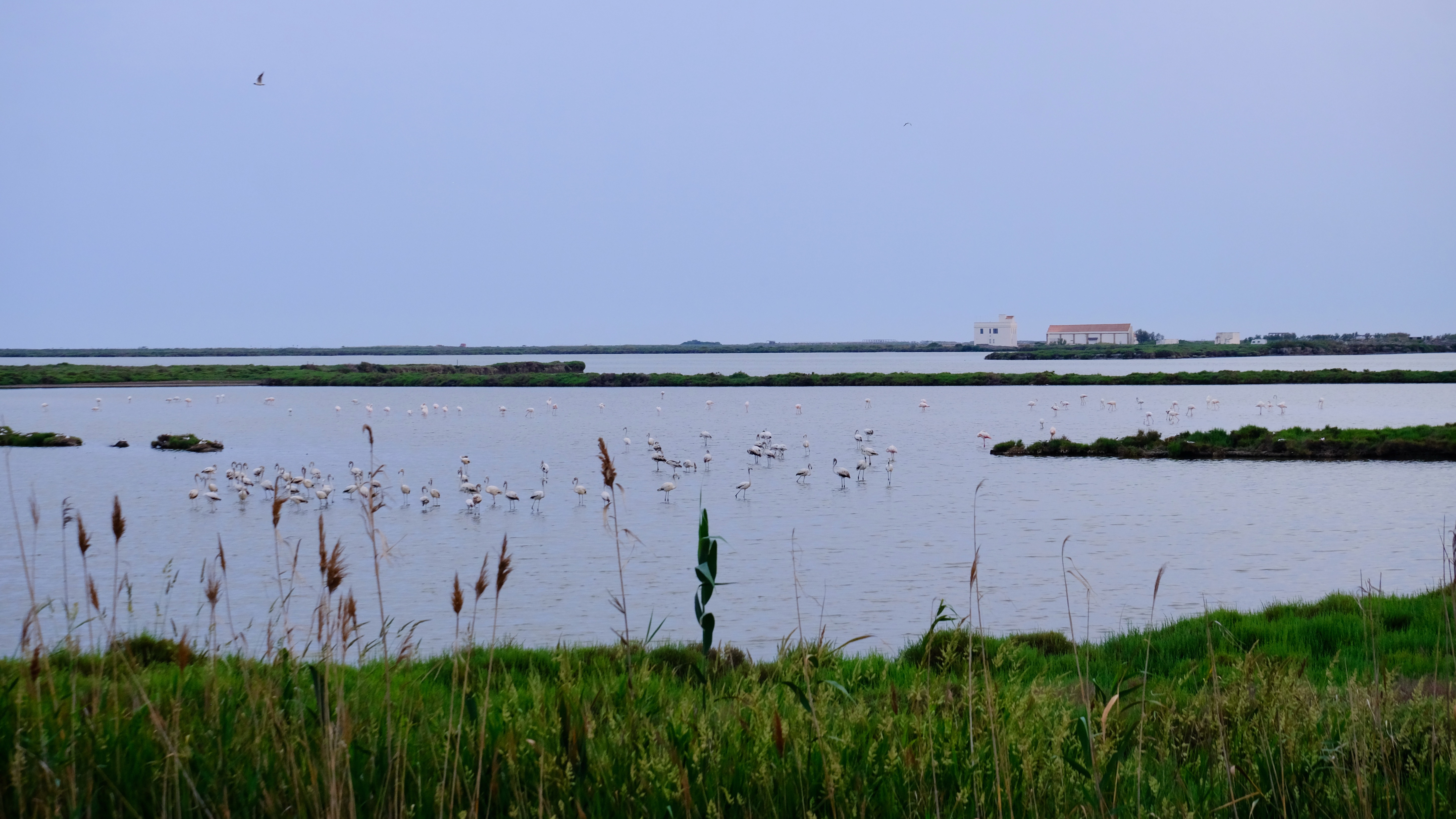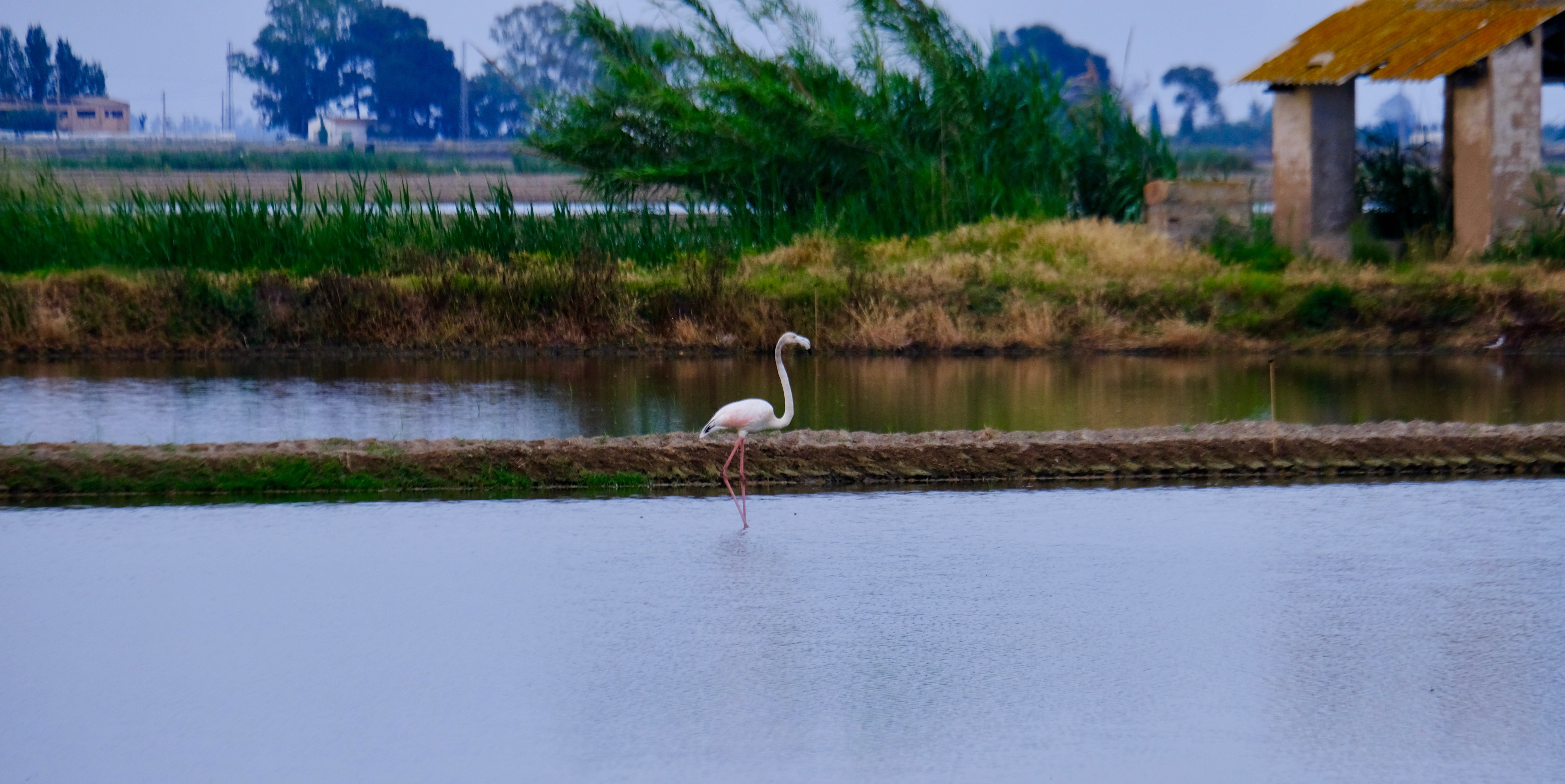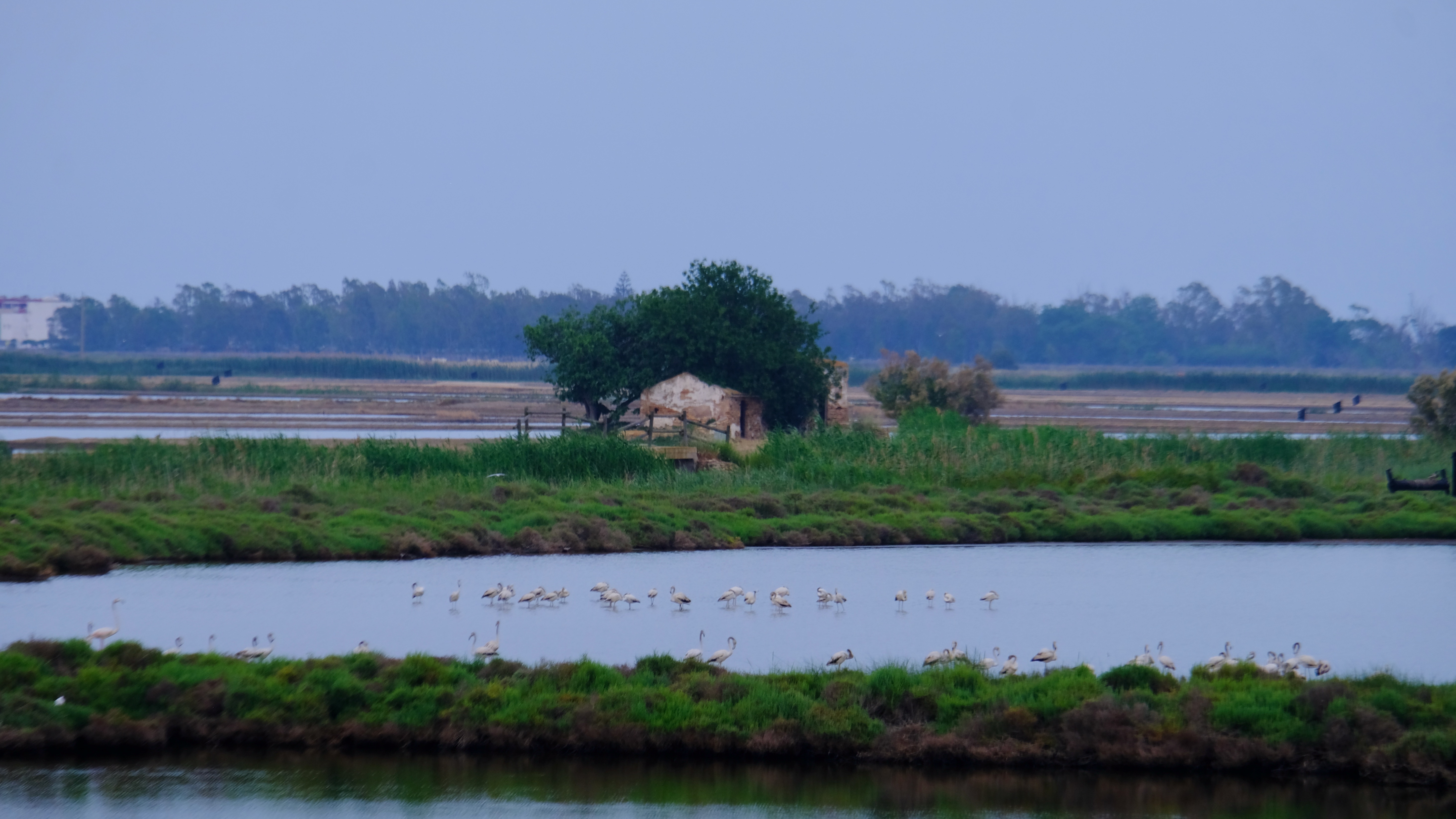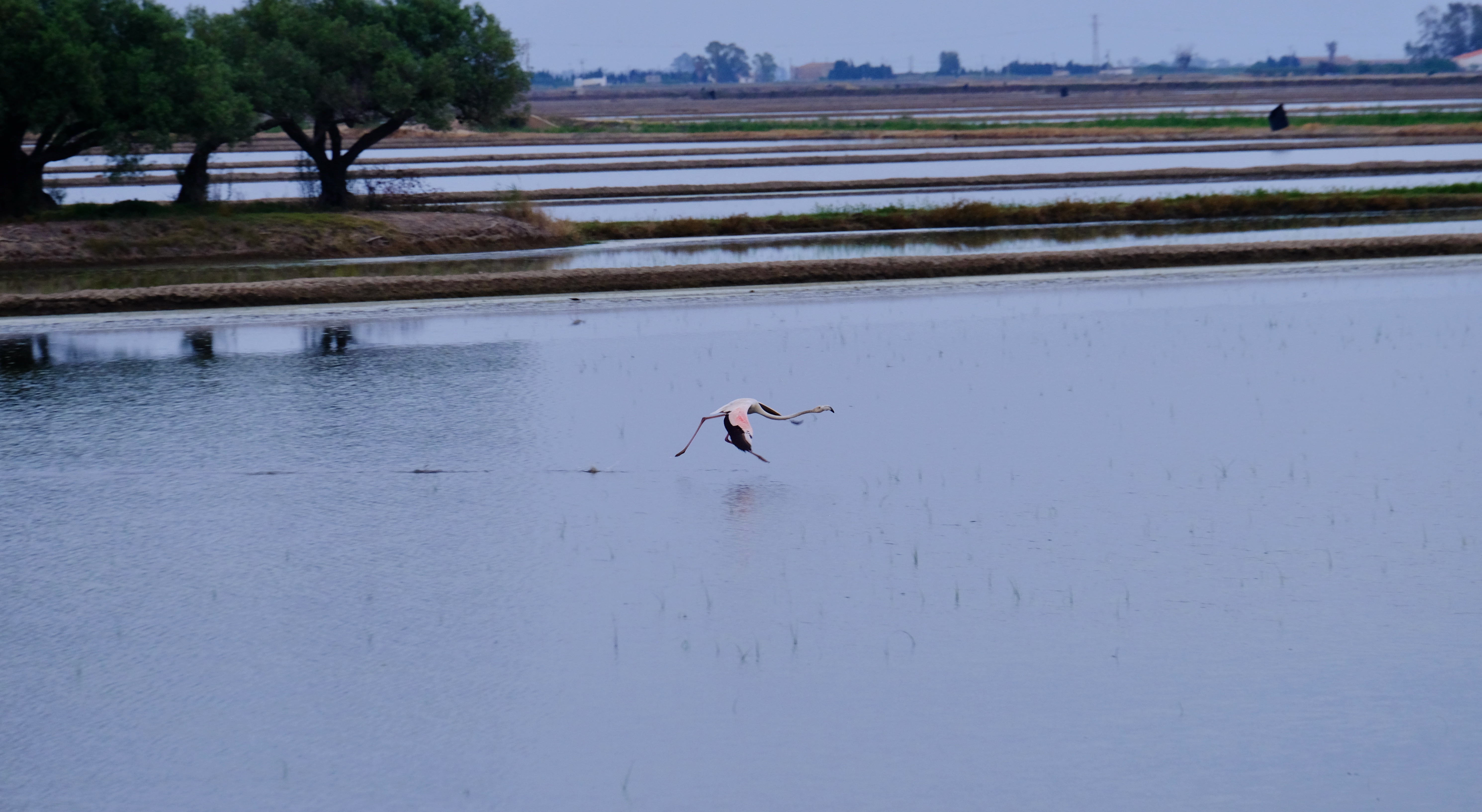 Along the main road to the Barra del Trabucador that runs alongside La Tancada you can see a few. The main flock back in May were the other side which required going inland, trusting the GPS down narrow roads flanked by rice fields in the middle of nowhere. Thankfully while minimal sign posted after parking in an abandoned building’s ‘garden’ a 5 minute walk we were at the hide. In fact you can walk and cycle to the hide, but we didn’t know this and it was getting late. Sunset was I think 40 minutes away. If looking on the map the whole delta doesn’t look that big, but it is! We stayed just outside the delta (just I thought it was in the delta) and to get to the main spots took at least 25 minutes driving.