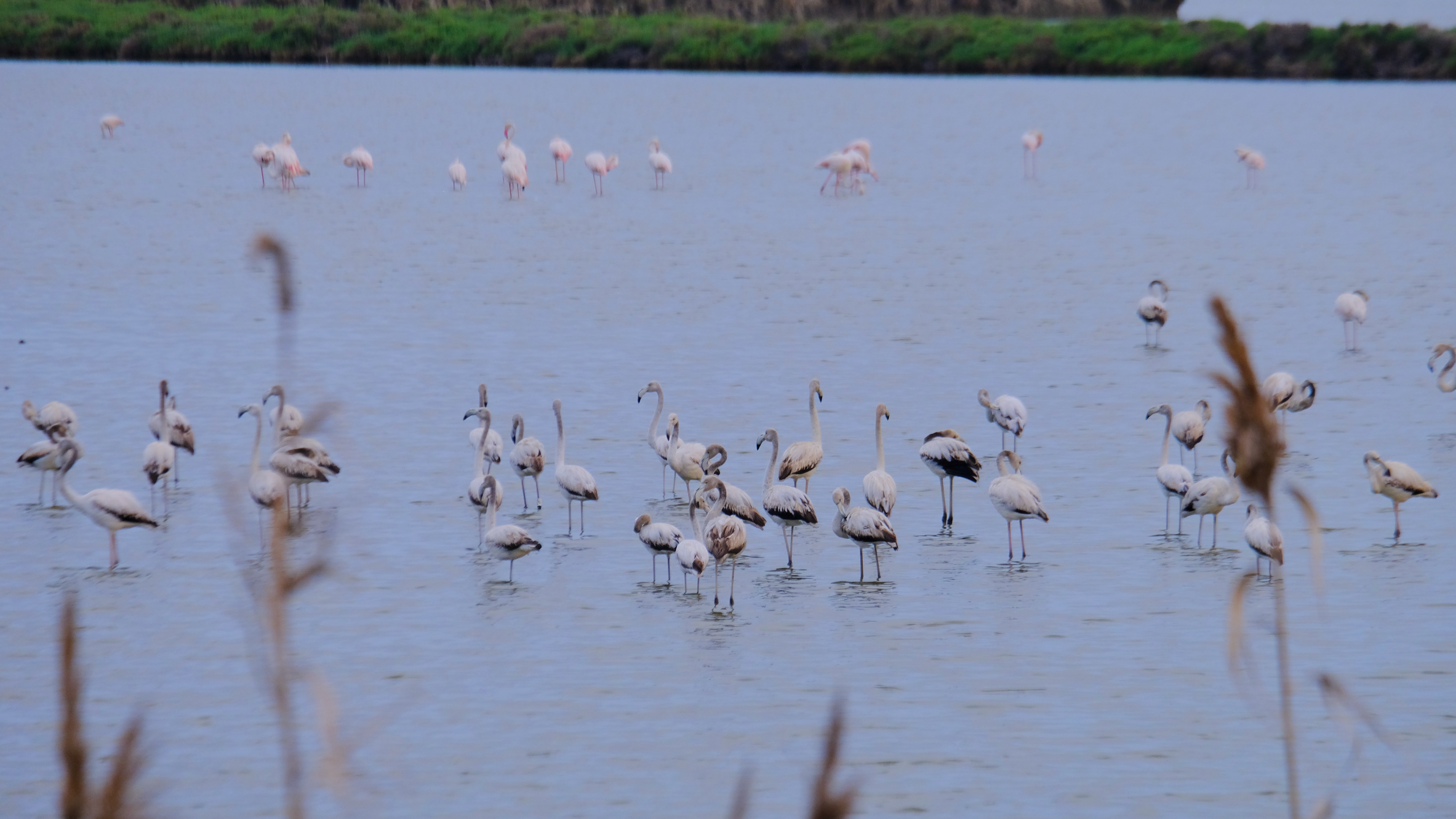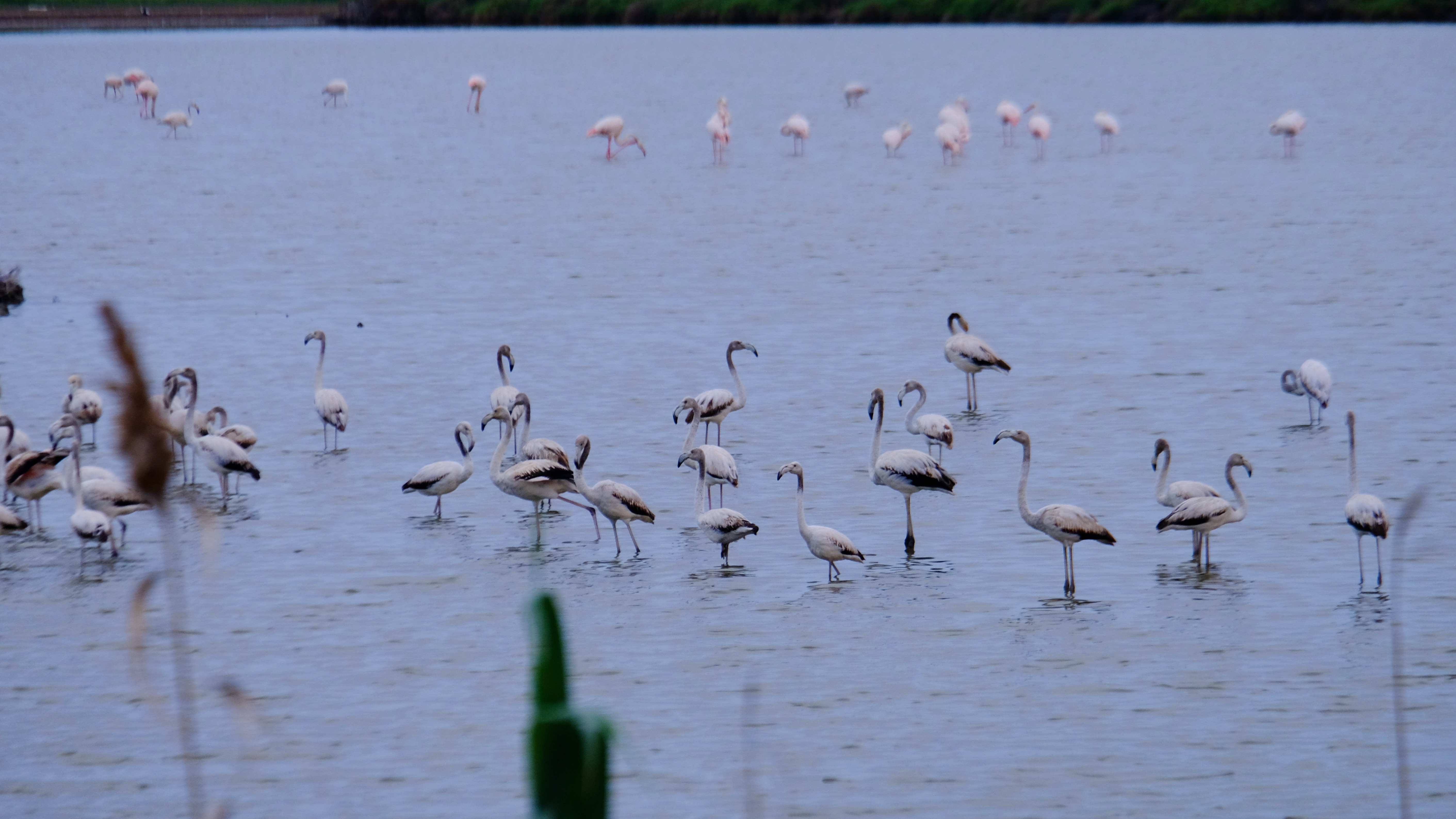 Getting closer! These guys are still to find the food that turns their feathers pink. They might be this year’s or last year’s babies.