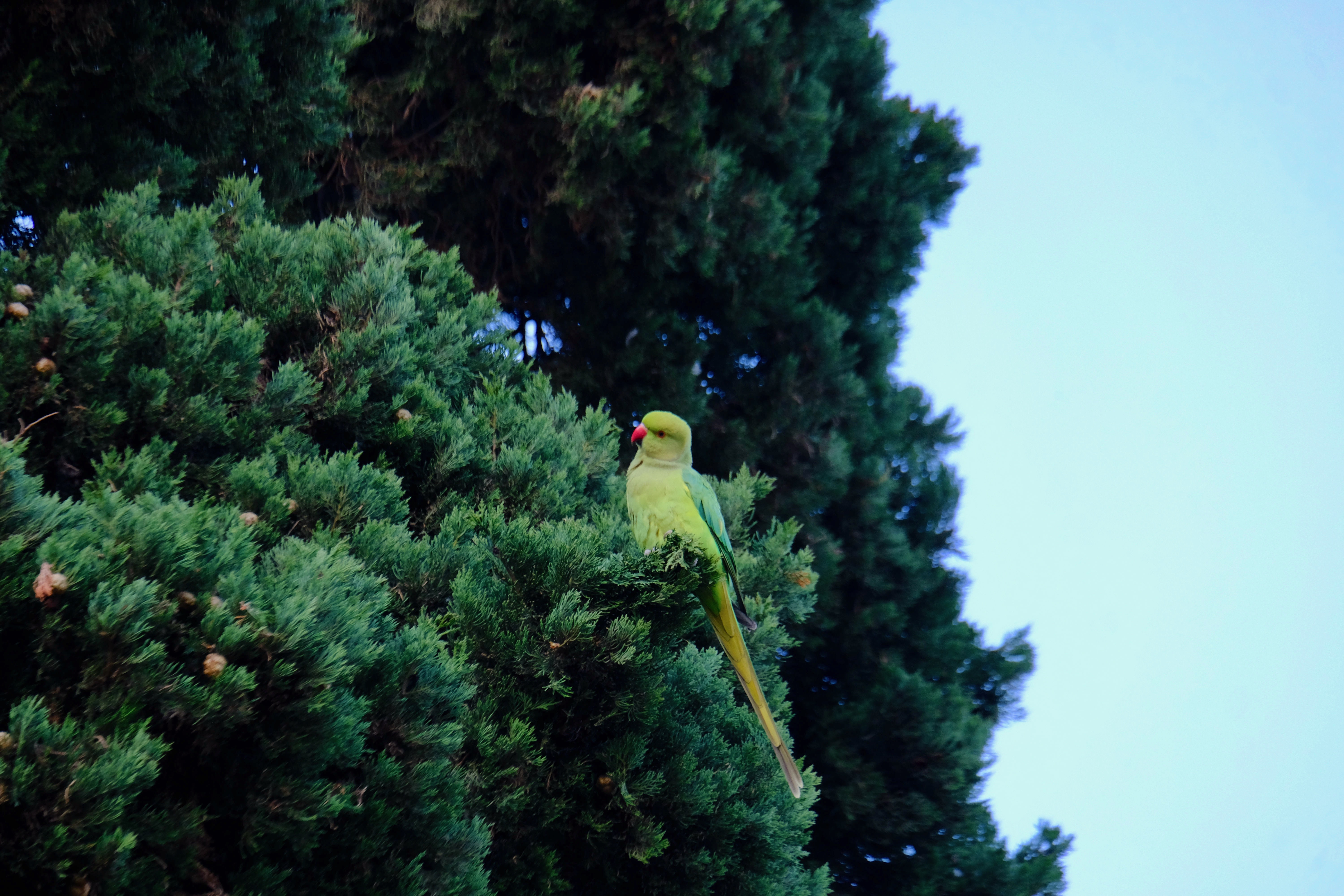 I noticed the conifers in Parc de la Ciutadella, not only gave winter shelter to the birds but also food! On this particular day there were several parakeets happily squawking snacking on cones.